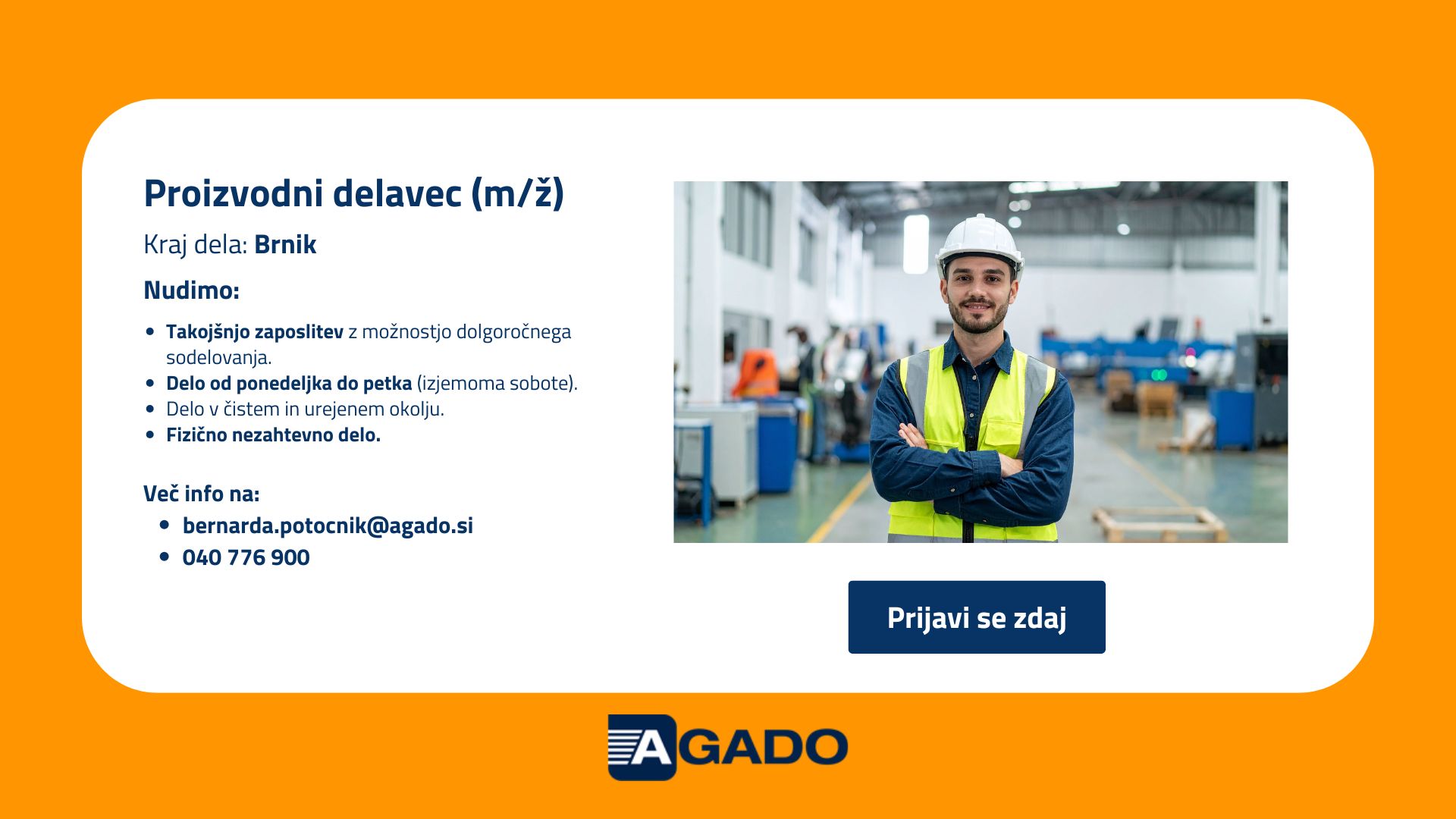 Za več informacij nas pokličite na 040-776-900 ali pošljite e-mail na: bernarda.potocnik@agado.si.