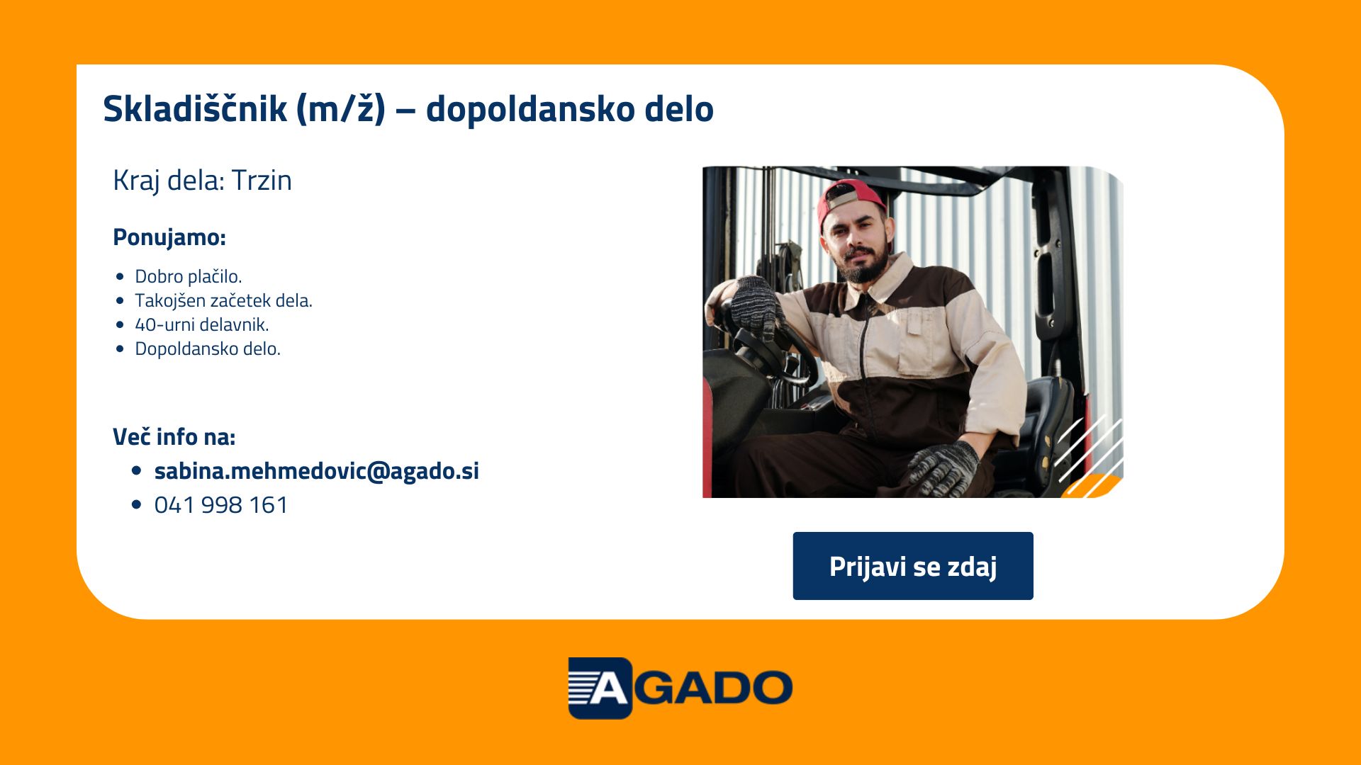 Če si želite postati del dinamičnega športnega okolja, vas vabimo, da se prijavite! V kolikor imate dodatna vprašanja o delovnem mestu, nas lahko kontaktirate na tel. št. 041 998 161 ali preko e-pošte sabina.mehmedovic@agado.si.